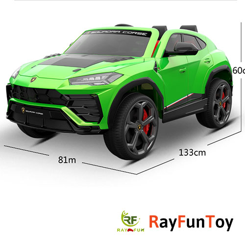 •Lamborghini officially licensed • AUX input for use with MP3 •USB/SD Connectivity • LED lights front • Forward & reverse gears •Power display •Push handle • 2 charging input ●Leather seat |